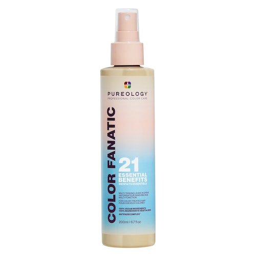 “You don’t need to layer on products during and after your shower to get all these benefits. Keep it simple and smart,” says Gregory Russell, the maven often curating flawless hair moments for Lily Collins, Anya Taylor-Joy, and Chloë Grace Moretz. “Instead of doubling up on over-conditioning and using bonding products daily, I recommend paring down your routine so your hair doesn’t get weighed down. Pureology’s Color Fanatic Multitasking Leave-In Spray is a leave-in, do-it-all product I have been favoring of late. It’s not overwhelming for your strands and it’s not filled with heavy proteins. It contains a bounty of ingredients that prime, give heat protection, and perfect strands to minimize frizz no matter what kind of weather your hair encounters.”