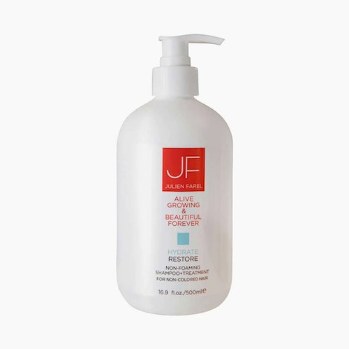 “When fixing hair that has been damaged from too much protein, it is very important you get the pH levels reset correctly,” says Angel, the beloved New York stylist who has worked with Gisele Bündchen, Catherine Zeta Jones, and Naomi Campbell. “After you use a good clarifying shampoo, you need to balance the hair levels. I instruct the majority of my model clients to wash with Julien Farel Hydration Restore and then let hair dry naturally—no conditioner necessary! This will provide the right foundation for styling the day after. It takes the guesswork out of vital hair.”