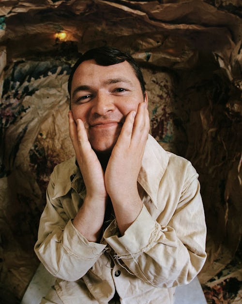 Born and raised in Cardiff, the capital of Wales, Carzana took to fashion in high school. He stayed behind in art class during lunch breaks, and his teachers showed him books on McQueen and Gianni Versace. He moved to London to study fashion at the University of Westminster, interned with Walter Van Beirendonck in Antwerp, then went on to a master’s program at Central Saint Martins. One of his tutors was Nasir Mazhar, the founder of the radical London pop-up store Fantastic Toiles and a hero of the city’s fashion counterculture. Mazhar became his mentor. “He encourages me to push myself,” says Carzana. He “pulls out my creativity and constantly questions everything.” Since Carzana started showing, Mazhar has become his collaborator too, contributing ethereal millinery to Carzana’s collections.