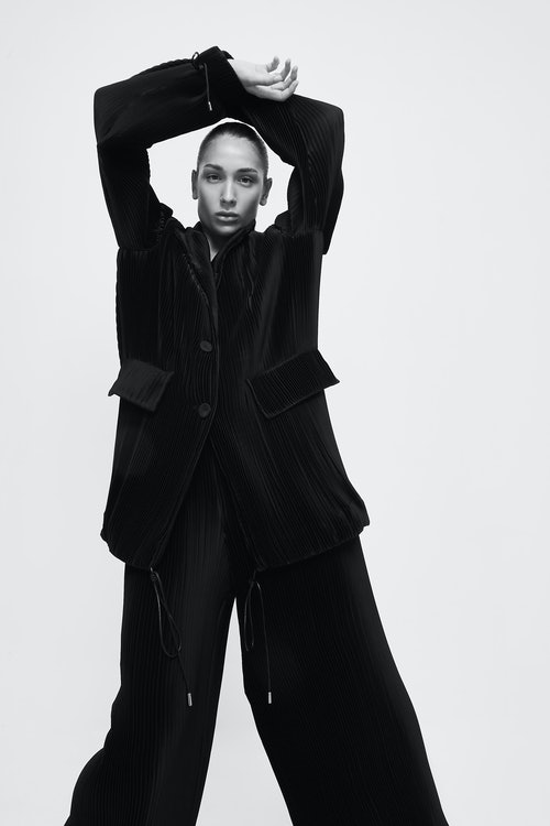 Hopefully Kaavia will give her mother some personal space for a minute, because this look deserves some respect. Union, wearing a pleated silk suit from Cong Tri’s fall/winter 2021 collection, evokes the ultimate modern businesswoman in oversized trousers that pool just the right amount around her feet, and the perfect streetwear detail: a drawstring peeking out from her jacket’s hem. Union finished off the look with a black Birkin because of course she did. Kaavia, I beg of you, let your mother have her moment. If you do, something tells me one day that bag will be yours.
