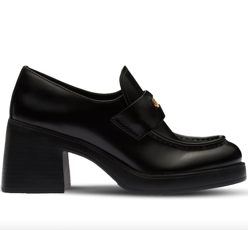 Hadid and Larson wore two similar, yet distinct, Miu Miu leather penny loafers. While Hadid’s slung more closely to the ground and had a more traditional shape, Larson’s pair followed a rounded look and had a sizable wedge.