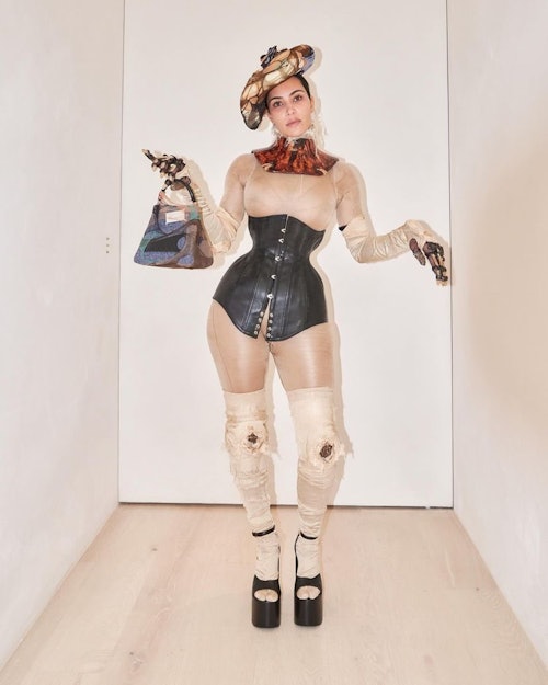Comments underneath Kardashian’s Instagram post were predictably harsh, with many feigning concern over the well-being of her organs, but it seems like the Skims mogul is committed to the Margiela vision. On the Met Gala red carpet, Kardashian made a statement in another custom Galliano-designed Margiela look that featured a metal mesh skirt and a controversy-inducing sweater and corset.