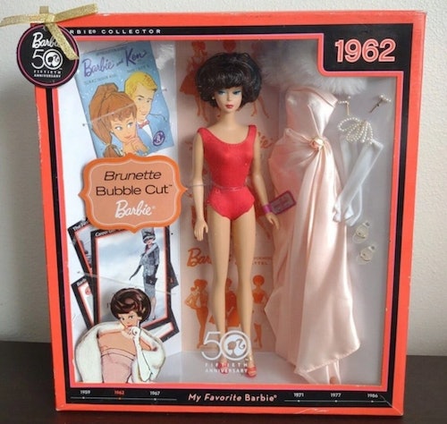 Though Robbie rocked her signature blonde hair, her mini dress mimicked the leggy feel of the original Barbie look. The “Brunette Bubble Cut” doll is something of a collector’s item amongst Barbie fans. It currently goes for around $600 on some secondhand resellers.